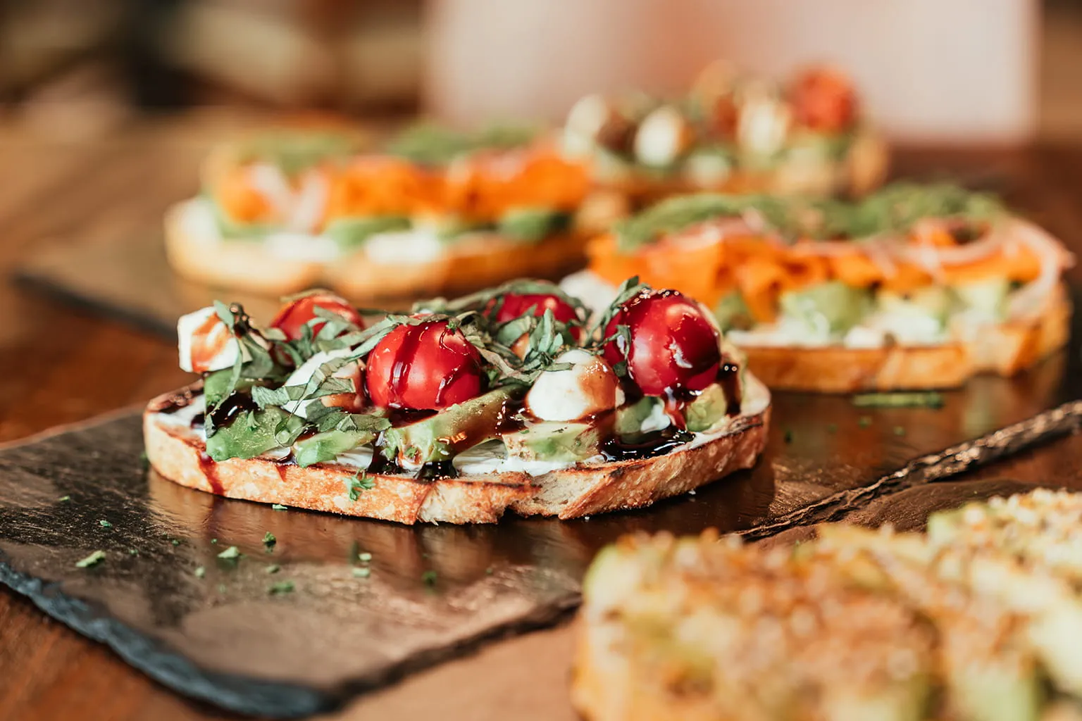 Our kitchen is a vibrant celebration of global flavor where handcrafted Italian pastas, Mediterranean mezze, Indian-inspired spices, Mexican-influenced plates, and timeless French bistro classics come together in perfect harmony. Guided by the seasons and sourced with intention, every dish is thoughtfully prepared using the freshest ingredients available. From comforting breakfast favorites to inventive, wine-worthy lunches and sunset dinners overlooking the vineyard and lake, our menu is designed to pair beautifully with the character, creativity, and charm of Temecula Valley.