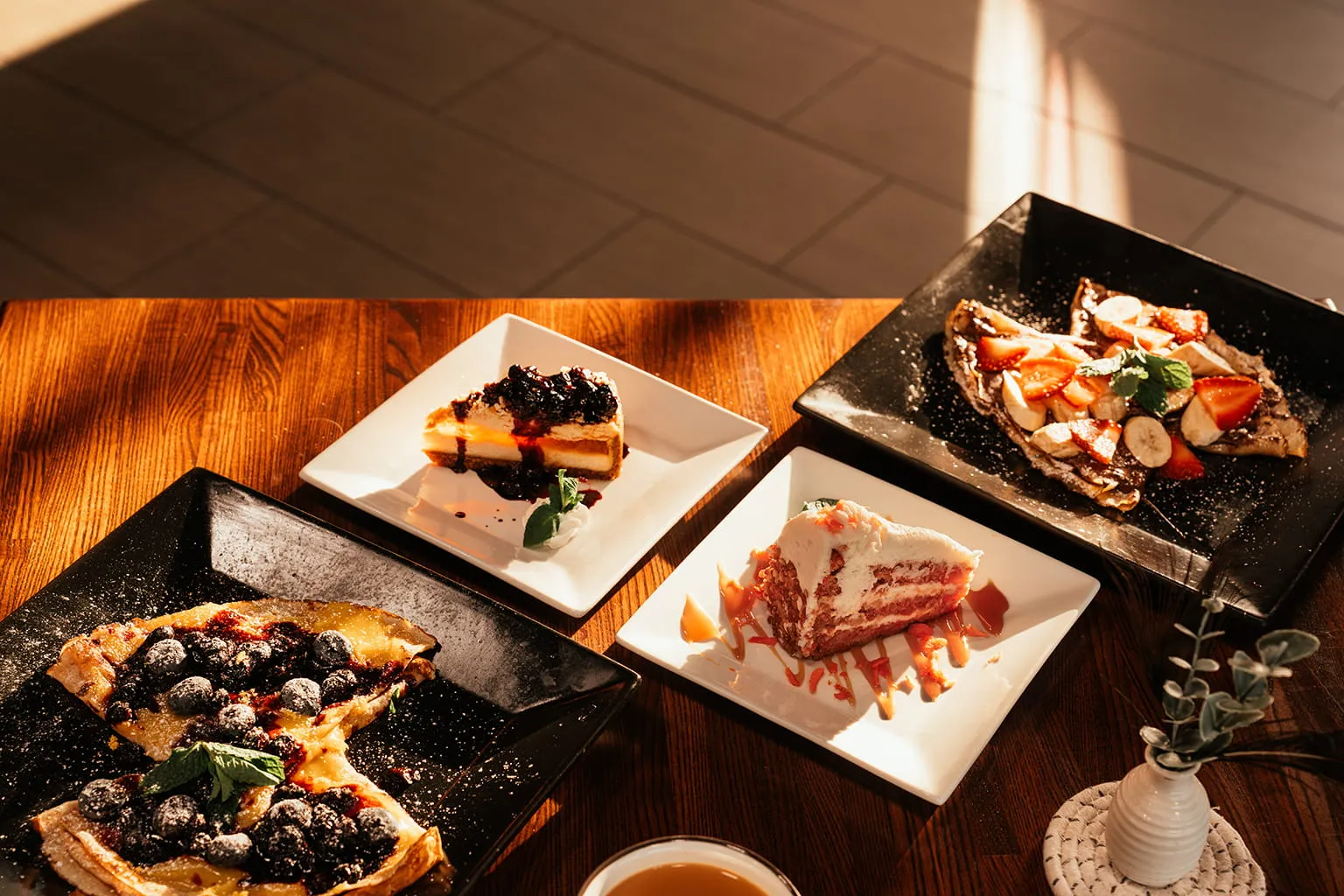 Complement your meal with expertly crafted espresso drinks, specialty coffees, and artisan teas. Our beverage program adds the perfect finishing touch to your vineyard dining experience.